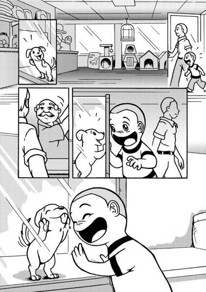 | “When the kid and the dog get near each other inside the pet shop.” | |