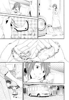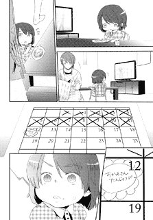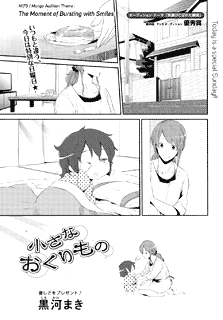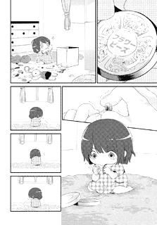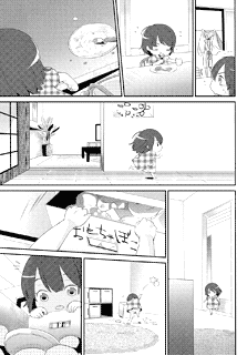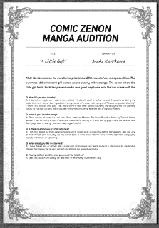 | “Maki Kurokawa won the excellence prize in the 26th round of our manga audition. The pureness of the innocent girl comes across clearly in her manga. The scene where the little girl holds back her present works as a good emphasis onto the last scene with the big smile. Watch how the cute little girl tries her best for her mother!” | |
