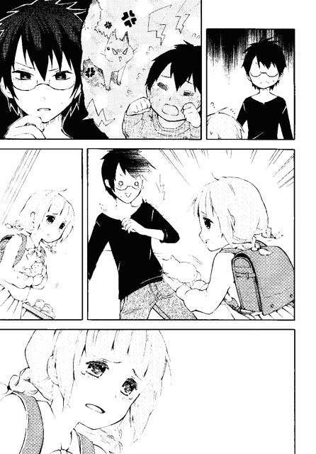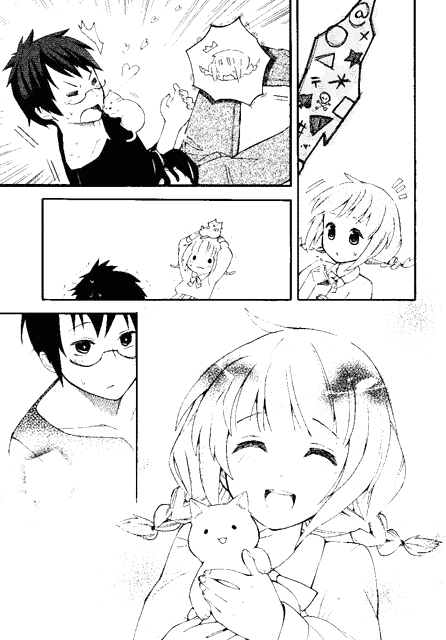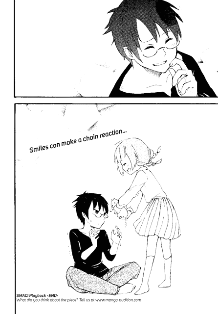 | “Thank you so much to all the people who supported me! It is all because of the encouragement and support by my surroundings that I could keep drawing, and it could have never been done with only my love to manga. I will continue to imrove myself, so do look forward!” | |