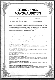 | “Behind the Cheeky Face',from the 15th round of our "Manga Audition" is the first work ever to win the Grand prix . Beautifully drawing out the atmosphere of a mysterious story, there is no doubt that this work is worthy of winning the best prize. Enjoy the interview with Rio Misumi sensei, besides her great work!” | |