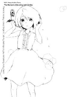 | “Introducing Anzu Yakumo, who took an Excellence Award in the 18th round of Manga Audition. When drawing a manga with no dialogue, a character's emotions are incredibly important for conveying information. In this regard, this manga has succeeded spectacularly, conveying more feelings through pictures than words ever could!” | |