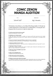 | “The Excellence Award Runner-up from Round 19 of Manga Audition. Mr. Murata has a unique background in that he used to be a comedian! With an amusing plot and a funny punchline, this work aims to make the reader smile!” | |