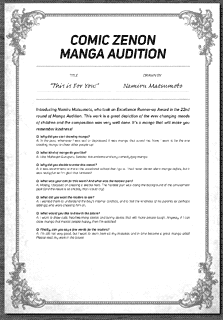 | “I'm still not very good, but I want to learn from all my mistakes and in time become a great manga artist! Please read my work in the future!” | |
